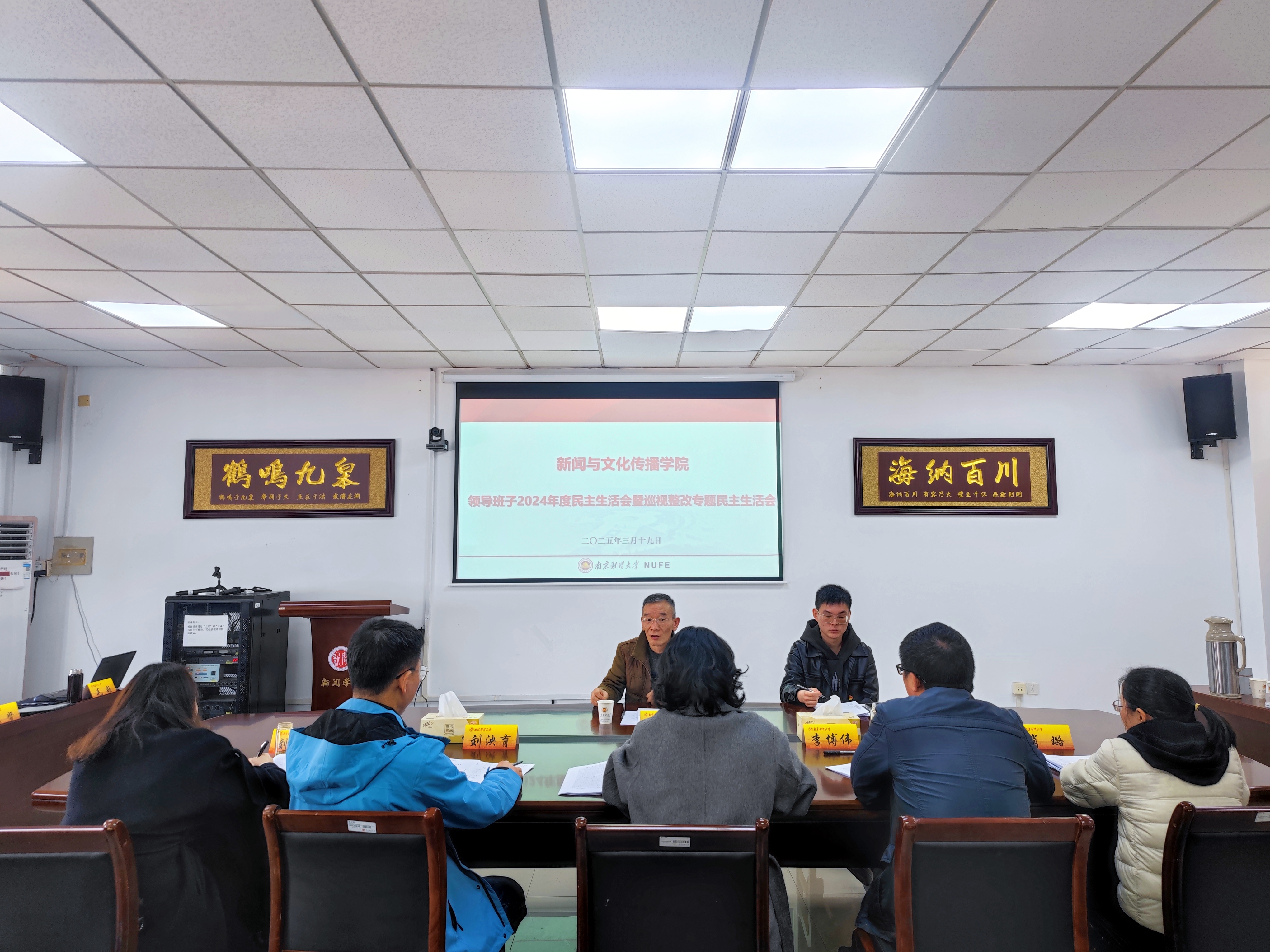 3月19日上午,新闻与文化传播学院党委领导班子在德正楼507会议室召开2024年度民主生活会暨巡视整改专题民主生活会。学校督导组成员校纪委办公室主任丁书俊、财政与税务学院组织员张周驰到会指导,学院党委领导班子全体成员参加会议,学院办公室主任和组织员列席会议。会议由学院党委书记陈丹主持。