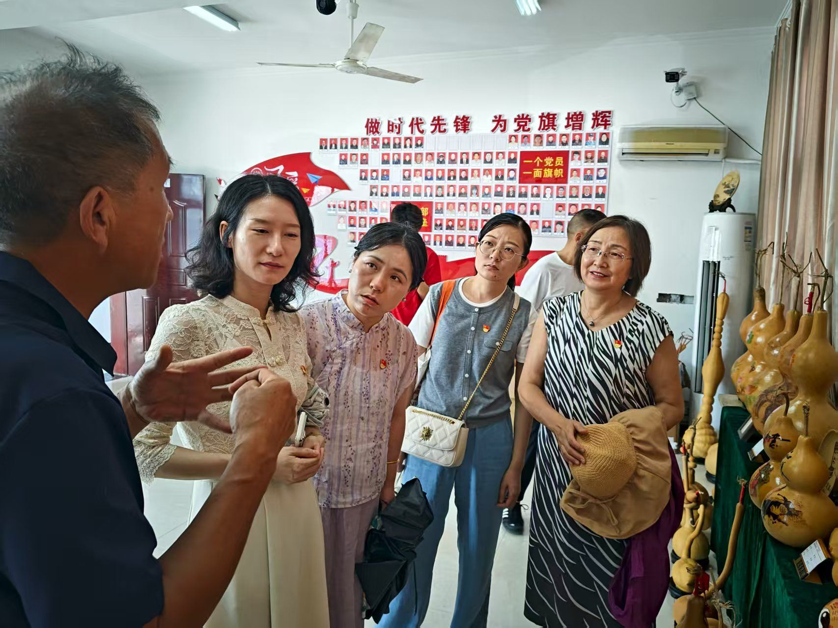 签约仪式结束后,学院师生实地考察了玉皇葫芦烙画制作现场、宿北大战红色教育基地以及光明村党群服务中心。通过实地参观与深入交流,学院师生深切感受了来龙镇在非物质文化遗产保护传承、红色基因赓续发扬、基层党建创新实践以及乡村产业振兴发展等方面取得的显著成效。
