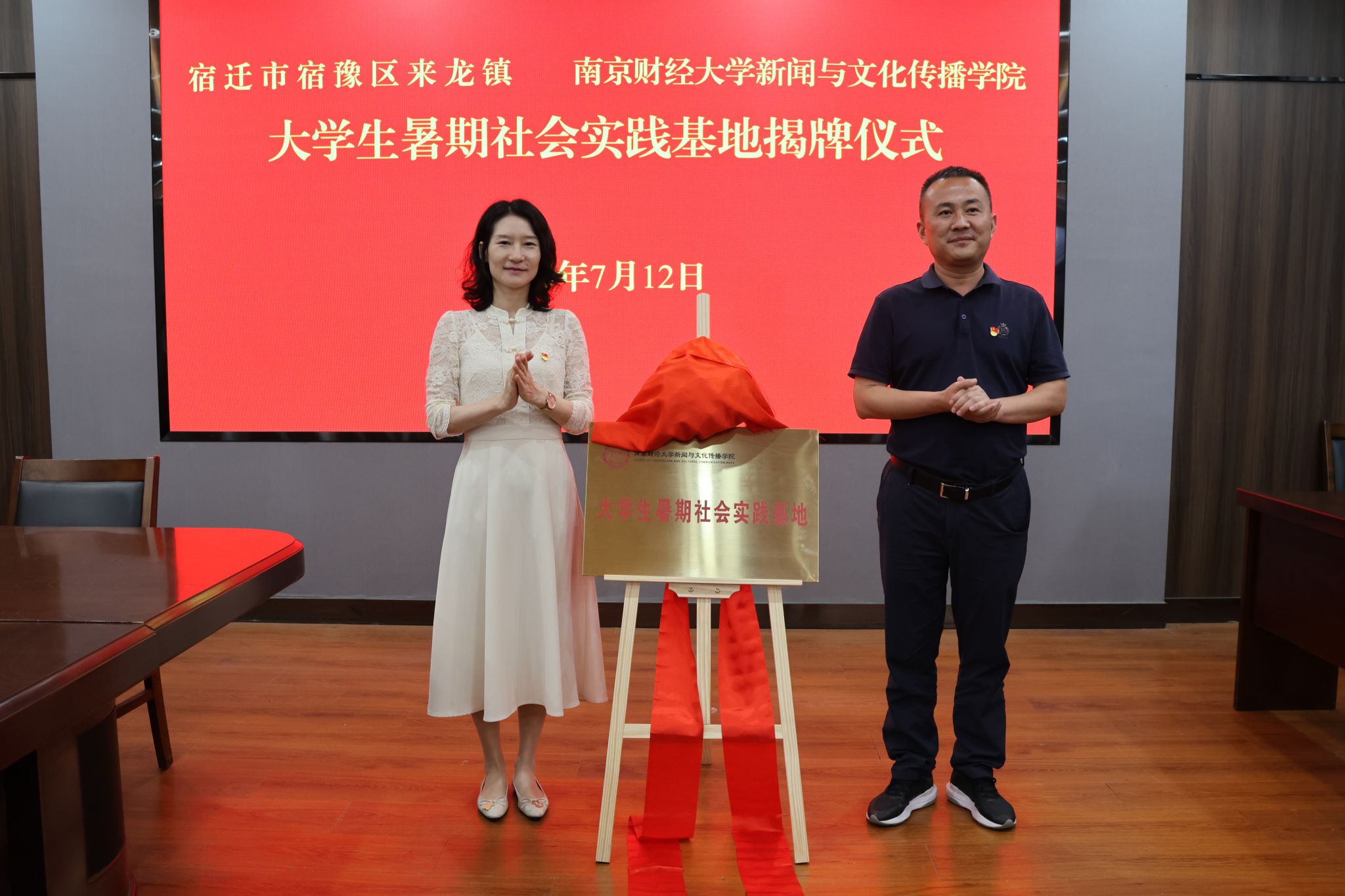 陈丹书记、高文博书记共同为“南京财经大学新闻与文化传播学院大学生暑期社会实践基地”揭牌。